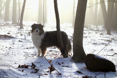 Kylie has a strong will, well-developed predatory instinct, and s o m e driving instinct when it comes to sheep - so we had to keep her under close control for quite some time, but after several months of training on a long leash, she learned that sheep must not be chased.