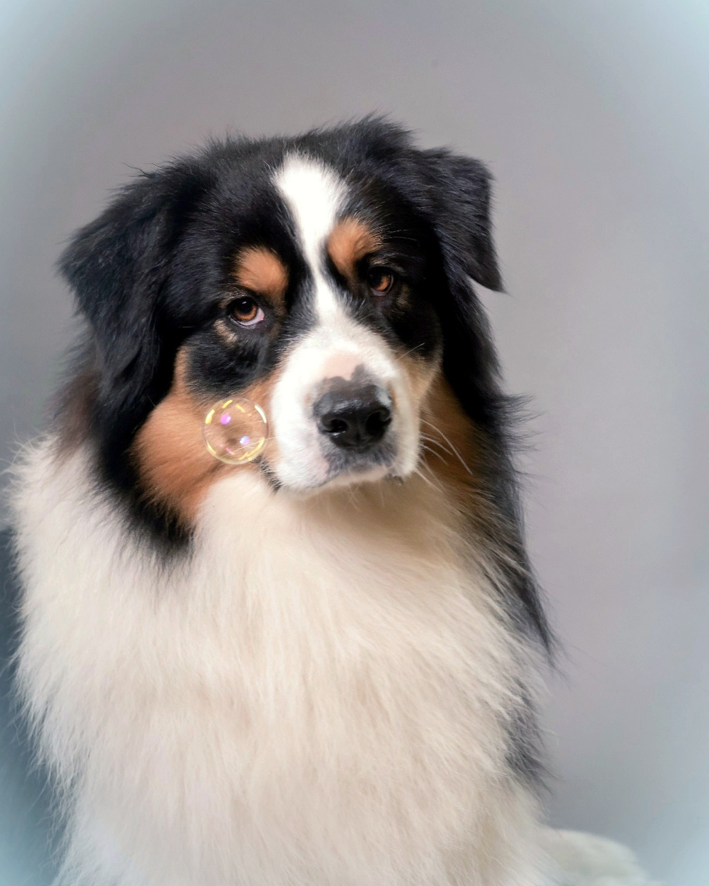 LEWIS ist ein schlanker, großer, black tri Rüde mit ausdrucksstarkem Kopf und wunderschönem Haarkleid; gute Knochenstärke, korrekte Winkelungen, sehr gut bemuskelt, raumgreifendes und fließendes Gangwerk; freundliches und aufmerksames WesenLEWIS ist unser "Strahlemann" und unser "Kasper", der sofort jedermanns Sympathie gewinnt. LEWIS ist feinfühlig und liebevoll, aber auch wachsam wie es für Aussies typisch ist. LEWIS wird sportlich im Rallye Obedience und im Turnierhundesport geführt und hat auch bereits im Gebrauchshundesport einige seiner Fähigkeiten unter Beweis gestellt.