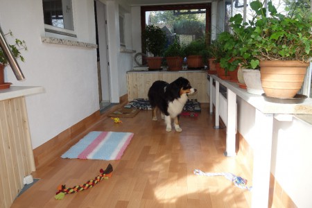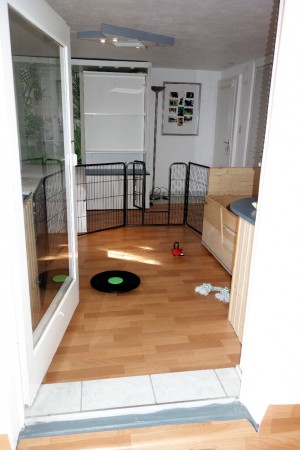 Die Welpen ziehen dann um ins Wohnzimmer und erhalten Zugang zum Garten. / The pups will then move into the living room and will get garden access.